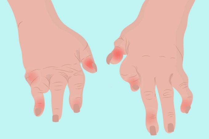 Nếu xuất hiện tình trạng các khớp ngón tay và đốt ngón tay xanh, tím, đây là dấu hiệu của viêm khớp dạng thấp. Viêm khớp vẩy nến không gặp tình trạng này. Nếu quanh hai khớp trên cùng của các ngón tay hình thành các nốt, thì khả năng mắc viêm khớp vẩy nến và thoái hóa khớp cao hơn.